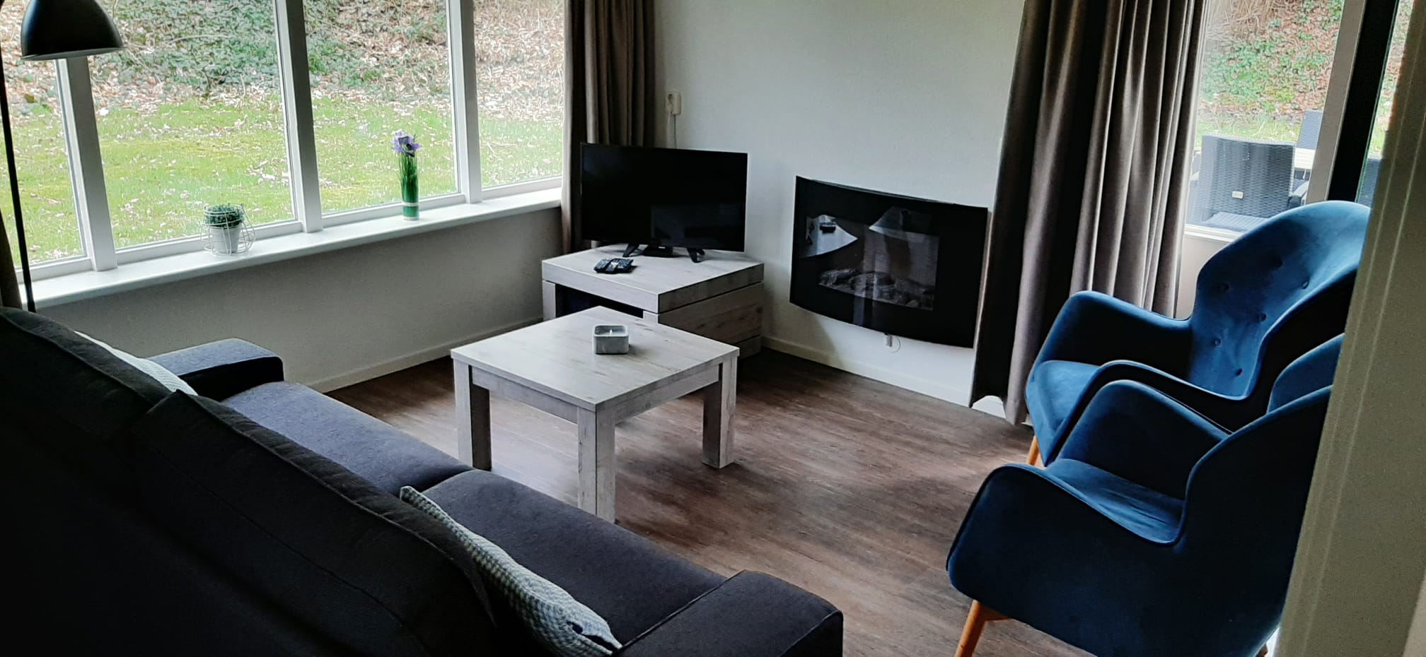 Binnen is het vakantiehuis gezellig en praktisch ingericht, met voldoende ruimte voor het hele gezin. De ruime zithoek met sfeerhaard nodigt uit tot ontspannen, terwijl de aparte eethoek perfect is voor gezamenlijke maaltijden of spelletjesavonden. Voor extra plezier zijn er diverse spelletjes aanwezig en ook te leen bij de receptie. Daarnaast kun je gebruikmaken van de televisie en van een eigen WiFi-verbinding.