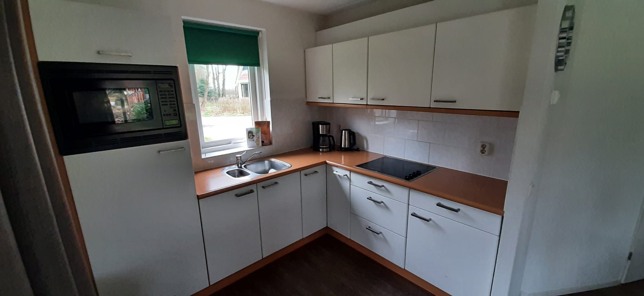 De keuken is goed uitgerust met alle benodigde keukeninventaris. Je vindt er een filterkoffiezetapparaat, een waterkoker, een koelkast met vriesvak, een combi-oven/magnetron en een vaatwasser. Daarnaast is er voldoende serviesgoed aanwezig.